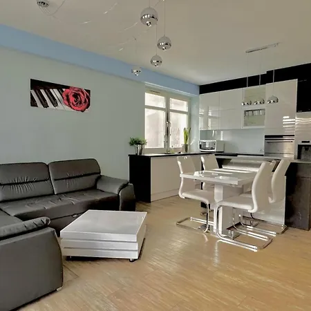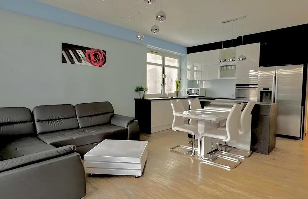 Sloneczny Penthouse Z Tarasem I Jacuzzi 8 Plus 2 Osob Stadion Narodowy Francuska apartment offers a kitchen. Additional amenities include a terrace.
